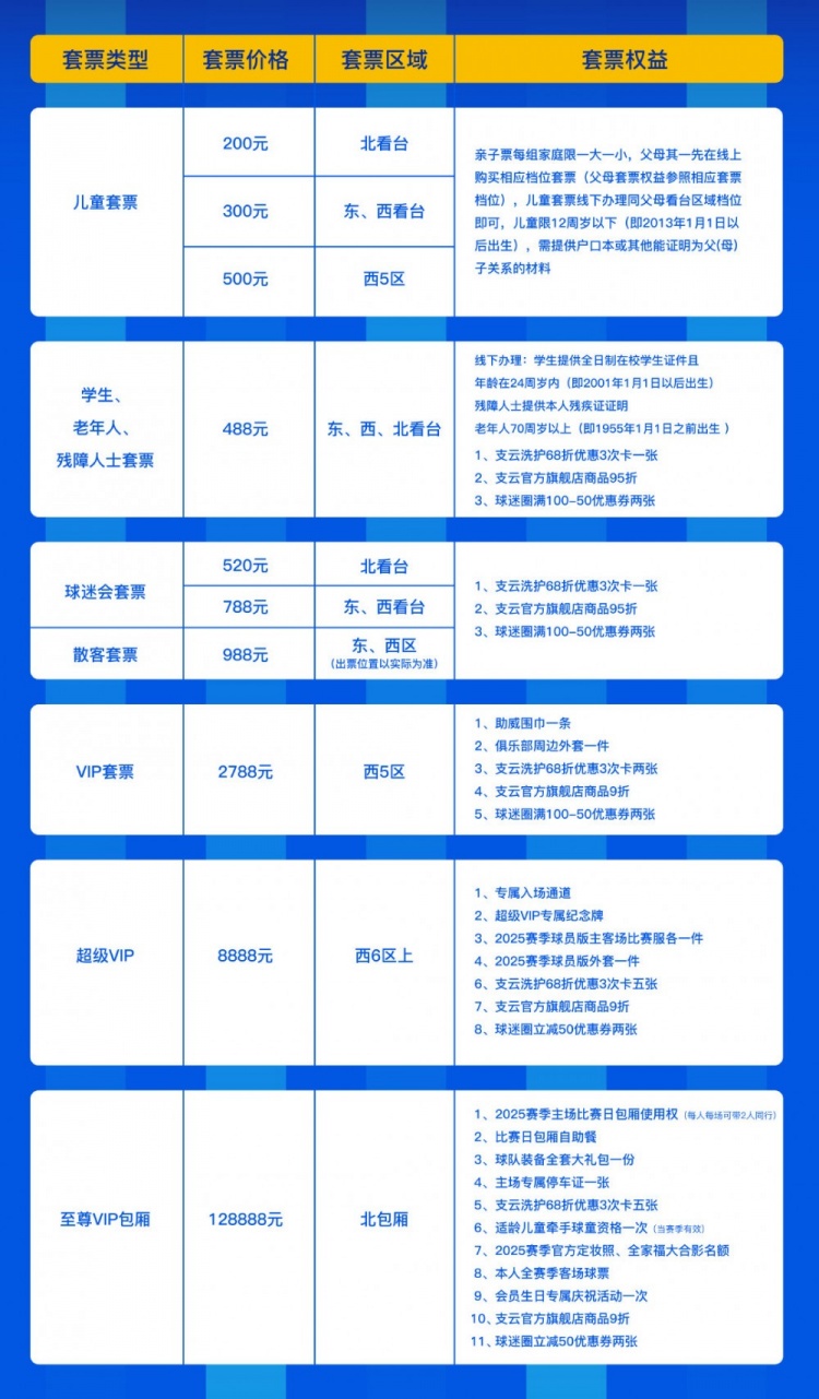 ?二、2025賽季主場(chǎng)套票銷(xiāo)售細則: