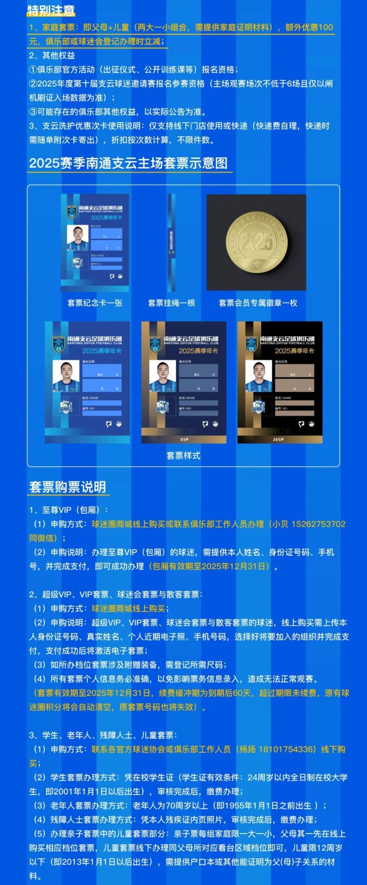 ?(1)2025賽季南通支云足球俱樂(lè )部主場(chǎng)套票先購先得,售罄為止;