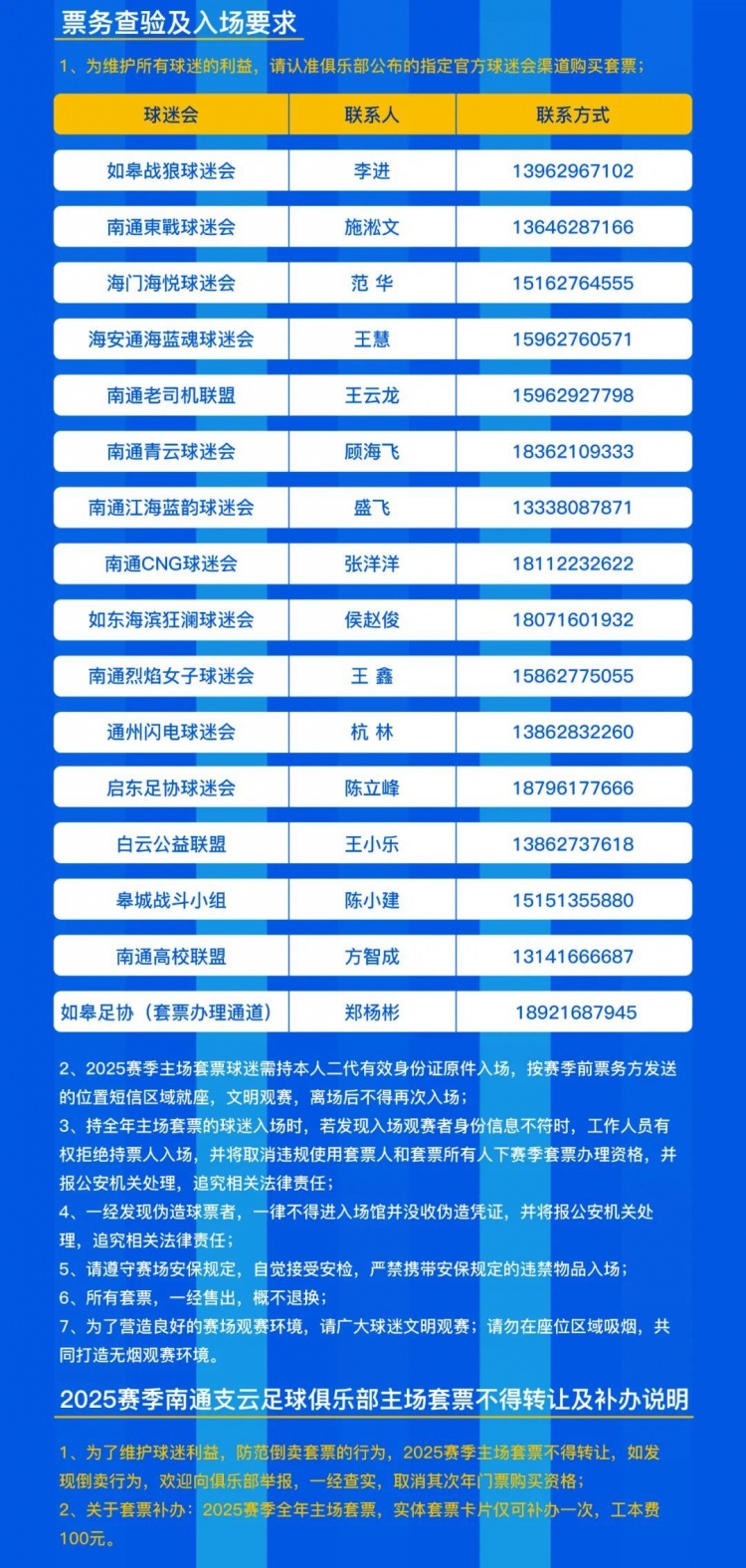 ?五、2025賽季南通支云足球俱樂(lè )部主場(chǎng)套票不得轉讓及補辦說(shuō)明: