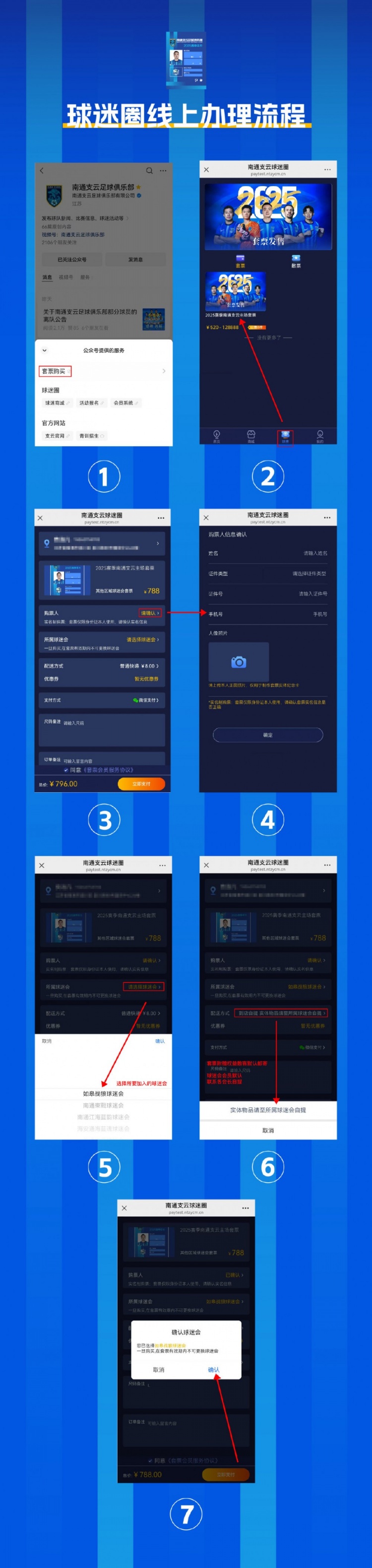 2、實(shí)名制要求:2025賽季南通支云足球俱樂(lè )部主場(chǎng)套票采用強制實(shí)名制銷(xiāo)售,購票人提供的個(gè)人信息要求務(wù)必真實(shí)準確,請在購買(mǎi)時(shí)再次確認實(shí)名制信息的正確性(名字+身份證號碼必須和身份證上的保持一致), 以免影響入場(chǎng)觀(guān)賽;