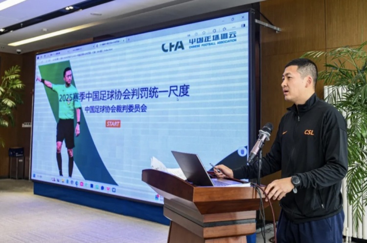 之后,特邀嘉賓、國際級、現役中超聯(lián)賽裁判員張雷圍繞2025賽季職業(yè)聯(lián)賽判罰統一尺度結合實(shí)戰案例進(jìn)行了深入細致的宣講,為全體人員上了一堂生動(dòng)精彩、豐富詳實(shí)的規則教育課。