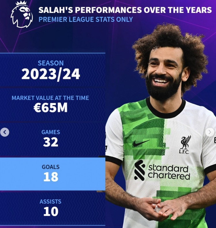 3月8日訊 利物浦在本賽季英超領(lǐng)跑,薩拉赫的出色狀態(tài)功不可沒(méi),《轉會(huì )市場(chǎng)》也列出了薩拉赫歷年英超數據情況。