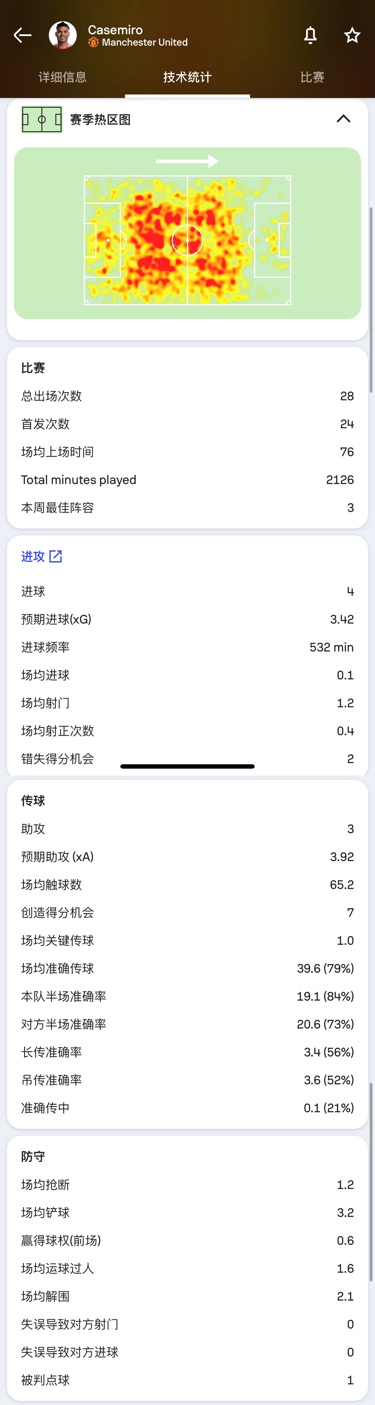 卡塞米羅表示:“回顧我的職業(yè)生涯,就我個(gè)人而言,我作為職業(yè)足球運動(dòng)員最好的賽季是在曼聯(lián)的第一個(gè)賽季?!?/p>