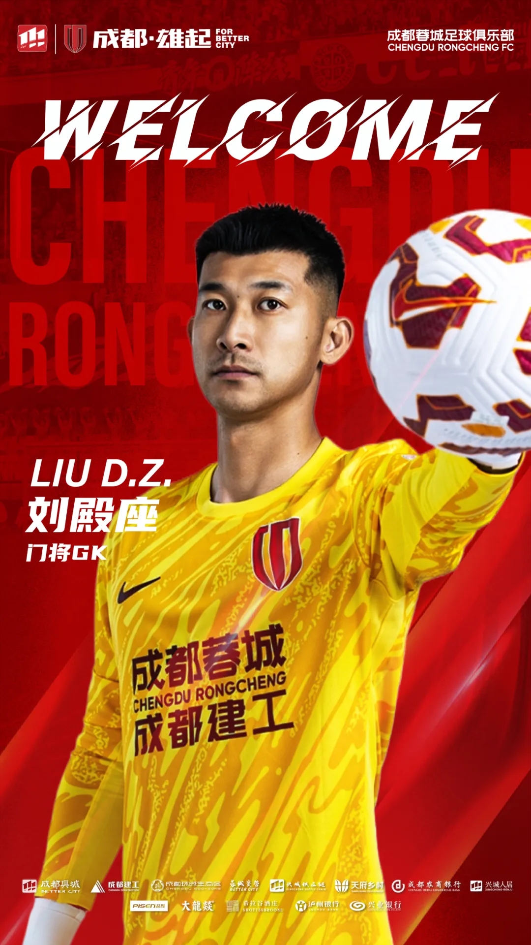 歡迎德?tīng)柤佣鄟?lái)到成都,加入成都蓉城的大家庭。你的到來(lái),將幫助蓉城在新賽季中取得更優(yōu)異的成績(jì)!