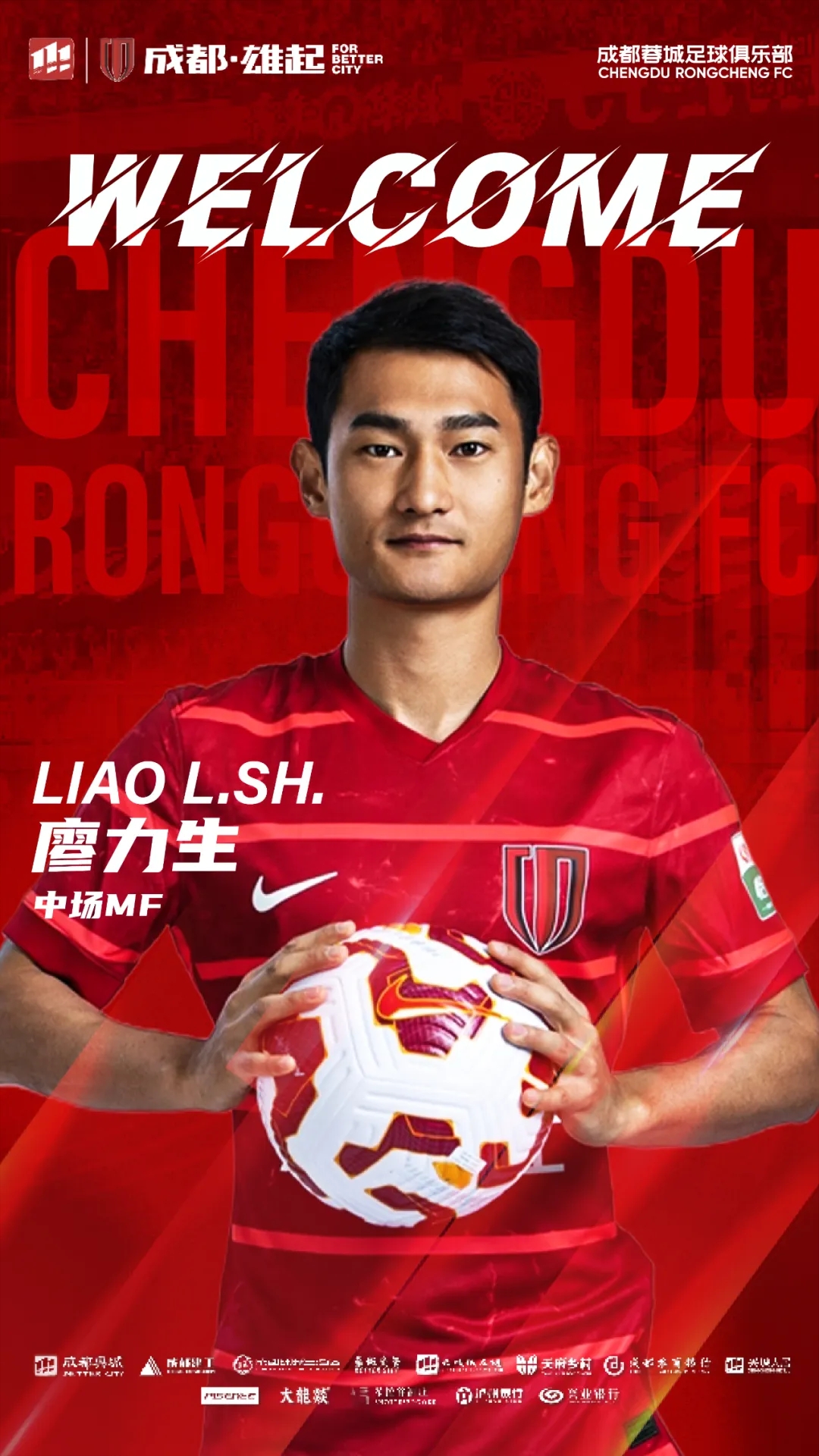 歡迎廖力生來(lái)到成都,加入成都蓉城的大家庭。你的到來(lái),將幫助蓉城在新賽季中取得更優(yōu)異的成績(jì)!