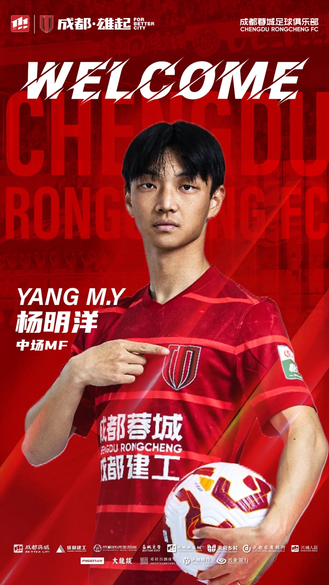 歡迎楊明洋來(lái)到成都,加入成都蓉城的大家庭。你的到來(lái),將幫助蓉城在新賽季中取得更優(yōu)異的成績(jì)!