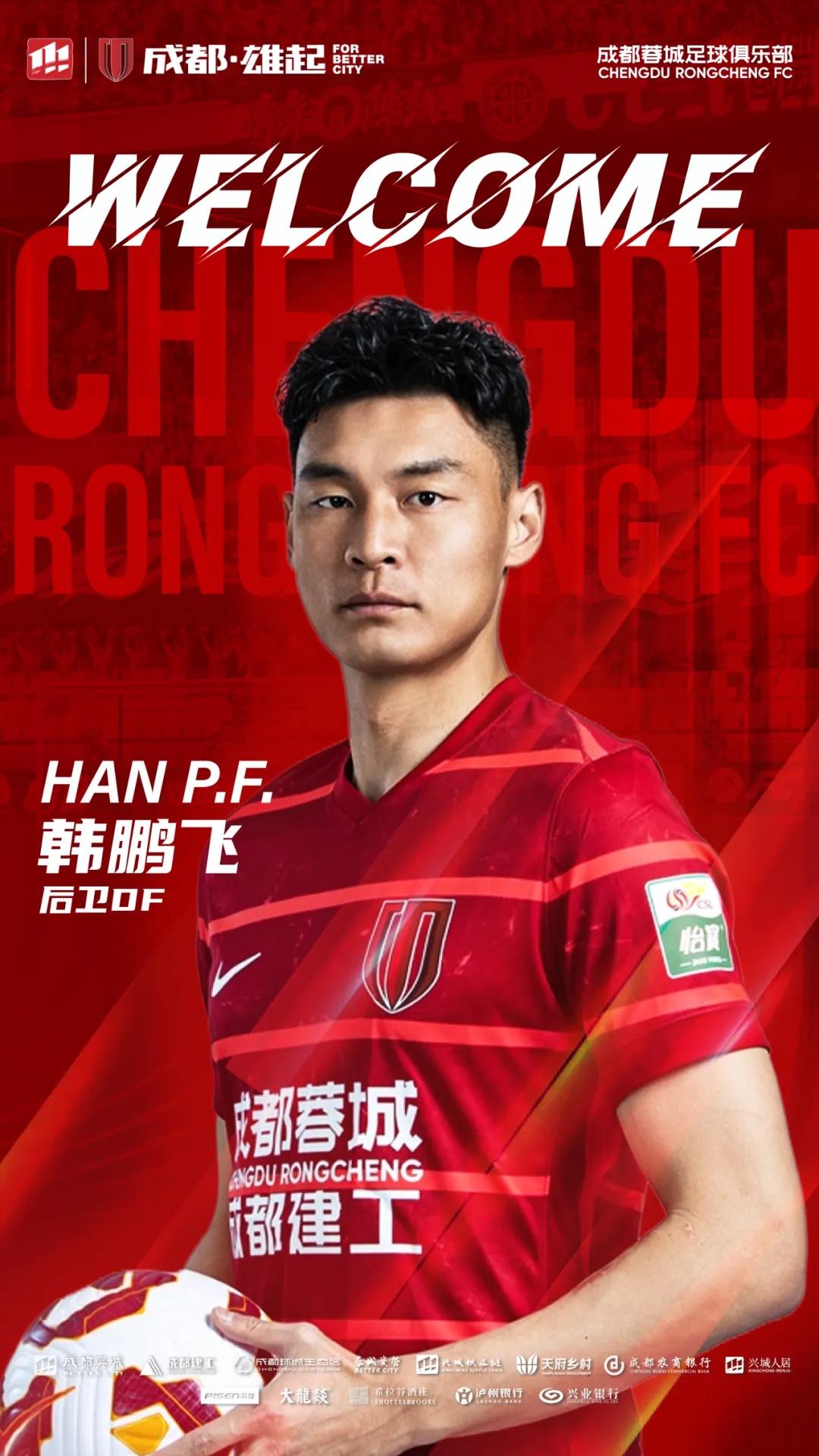 歡迎韓鵬飛來(lái)到成都,加入成都蓉城的大家庭,你的到來(lái)將為隊伍注入新的活力與力量!