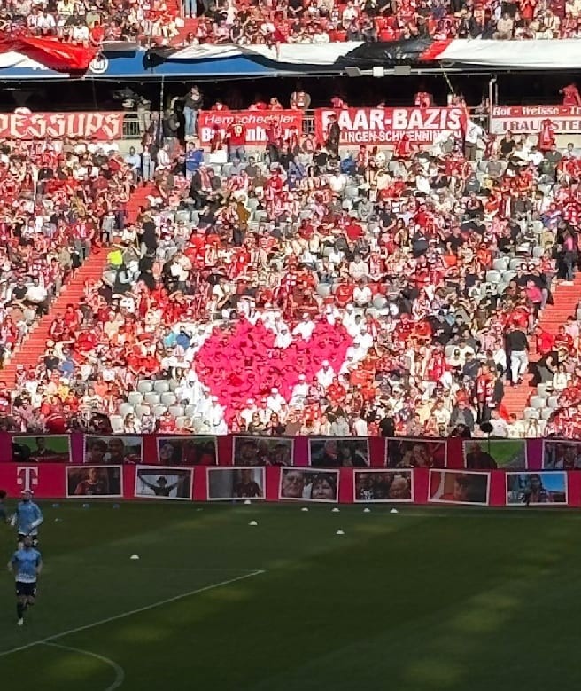 3月9日訊 本輪德甲,拜仁在主場(chǎng)2-3不敵波鴻?!秷D片報》報道,拜仁安聯(lián)球場(chǎng)看臺上標志性的德國電信“T”字形圖案在本場(chǎng)比賽被心形圖案取代。