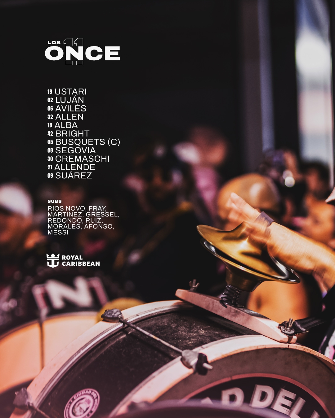 邁阿密?chē)H首發(fā):19-烏斯塔里、2-盧揚、6-阿維萊斯、32-阿倫、18-阿爾巴、42-楊尼克-布萊特、5-布斯克茨、8-特拉斯科、30-克雷馬斯基、21-阿連德、9-蘇亞雷斯