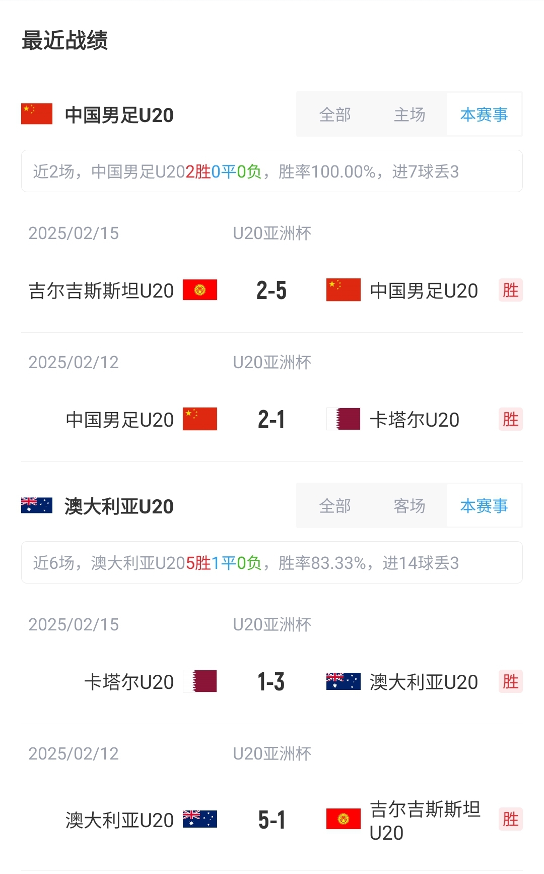 目前中國男足U20和澳大利亞U20均取得兩連勝,提前晉級八強,淘汰賽的對手將是B組的前兩名(A1vsB2,A2vsB1)。