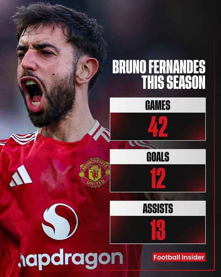本賽季,B費各項賽事出場(chǎng)42次,貢獻12個(gè)進(jìn)球和13個(gè)助攻,并創(chuàng )造了87次機會(huì )。