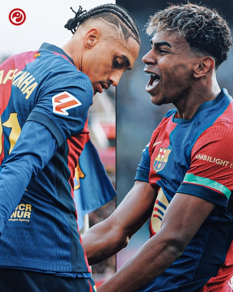 數據統計顯示,拉菲尼亞是本賽季西甲唯一在運動(dòng)戰能夠創(chuàng )造機會(huì )50+的球員(57次),他在26輪聯(lián)賽貢獻13球7助攻;亞馬爾本賽季成功過(guò)人高達95次,比其他西甲球員至少多出23次,也是本賽季西甲唯一助攻上雙的球員(11次)。