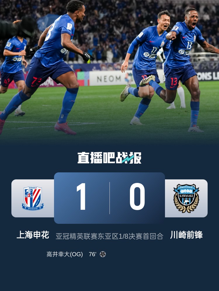 03月12日訊 亞冠精英聯(lián)賽東亞區1/8決賽次回合,上海申花客場(chǎng)對陣川崎前鋒,首回合申花1-0占得先機。