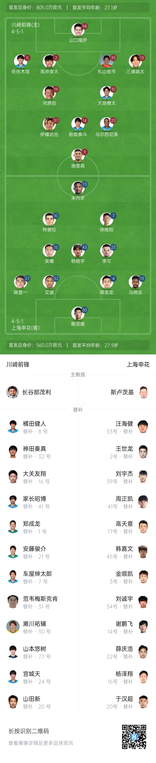 川崎前鋒首發(fā):98-山口瑠伊、2-高井幸大、5-佐佐木旭、13-三浦颯太、35-丸山祐市、10-大島僚太、14-脅坂泰斗、19-河原創(chuàng )、9-埃里松(F)、23-馬爾西尼奧(F)、37-伊藤達哉