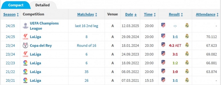 據德轉數據統計,皇馬近5年在各項賽事共計6次客戰馬競,僅獲1勝,戰績(jì)?yōu)?勝2平3負。