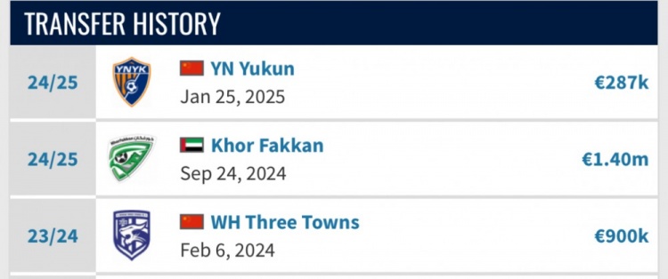 2024年年初,武漢三鎮以90萬(wàn)歐元的轉會(huì )費引進(jìn)了佩德羅-恩里克。由于在武漢三鎮表現不俗,2024年夏天,武漢三鎮以140萬(wàn)歐元的價(jià)格將其賣(mài)給了阿聯(lián)酋的豪爾費坎。效力豪爾費坎半賽季后,佩德羅-恩里克重返中超聯(lián)賽,以28.7萬(wàn)歐元的轉會(huì )費加盟升班馬云南玉昆。短短半個(gè)賽季,豪爾費坎在佩德羅-恩里克身上的投資凈虧損超過(guò)了百萬(wàn)歐元。