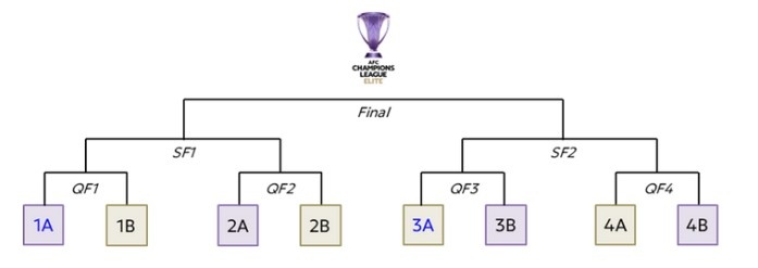 利雅得新月落位1A,其余三支西亞球隊落位2A、3B、4B;
