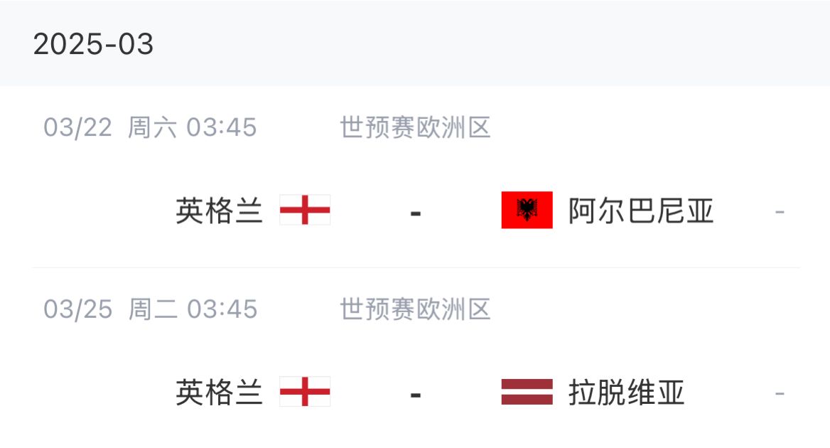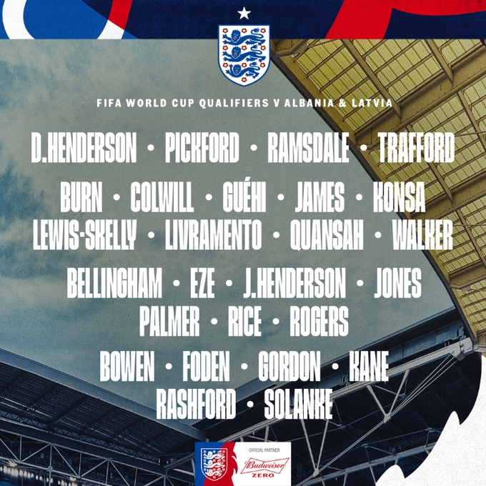 本期英格蘭隊將在3月底出戰兩場(chǎng)世預賽,對手分別是阿爾巴尼亞和拉脫維亞。