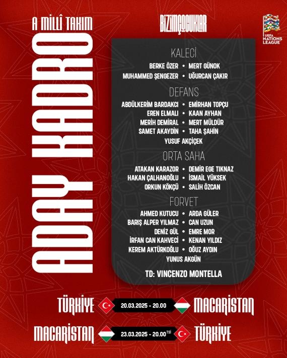 3月14日訊 土耳其最新一期名單公布,恰爾汗奧盧領(lǐng)銜,居勒爾、伊爾迪茲、科克庫、德米拉爾、厄茲詹等球員在列。