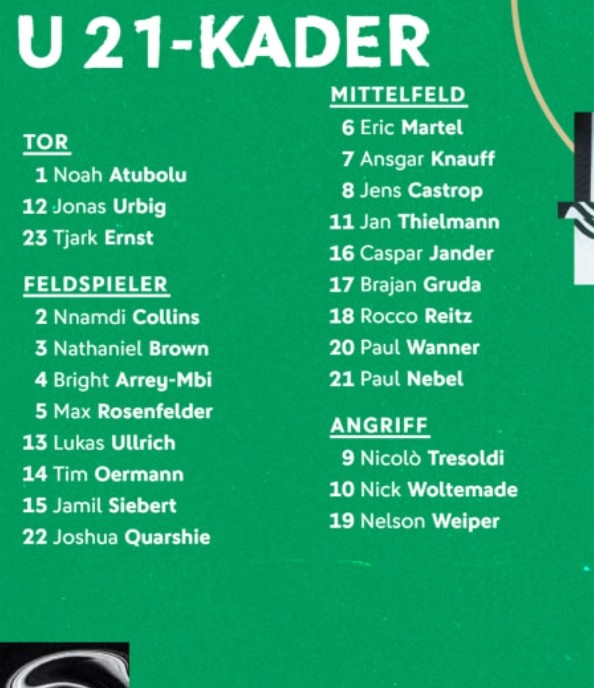 3月14日訊 即將到來(lái)的國際比賽日,德國U21將和斯洛伐克以及西班牙交手。目前,德國U21已經(jīng)公布了大名單,沃爾特馬德、萬(wàn)納爾、克瑙夫以及烏爾比希入選。