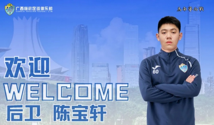 陳寶軒,2008年12月4日出生于廣西南寧,身高188cm,司職中后衛/后腰。陳寶軒出自廣西恒宸青訓,曾代表恒宸青訓征戰各項賽事。期待他通過(guò)自身努力,盡早出現在職業(yè)賽場(chǎng)。新賽季他將身披60號球衣征戰各項賽事。