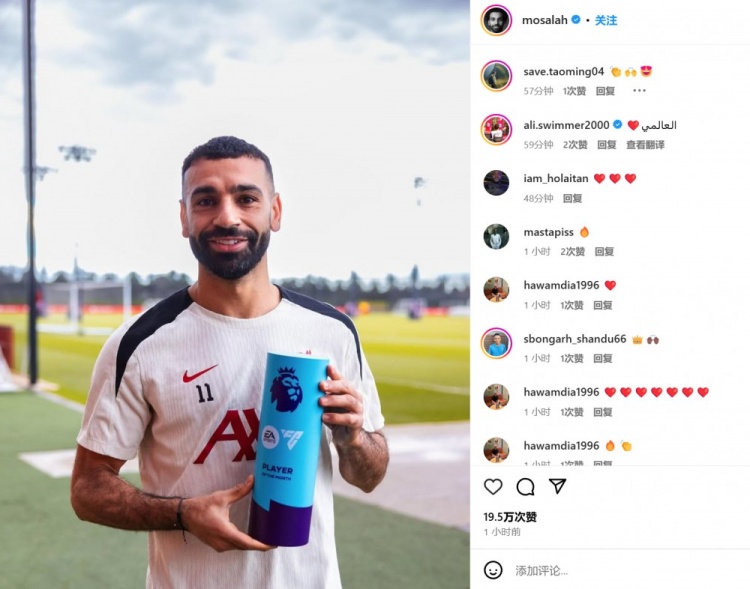 薩拉赫也通過(guò)社媒曬出了自己手捧獎杯的照片,但并未附加文字內容。這也是利物浦在歐冠出局后,法老首次更新社媒動(dòng)態(tài)。