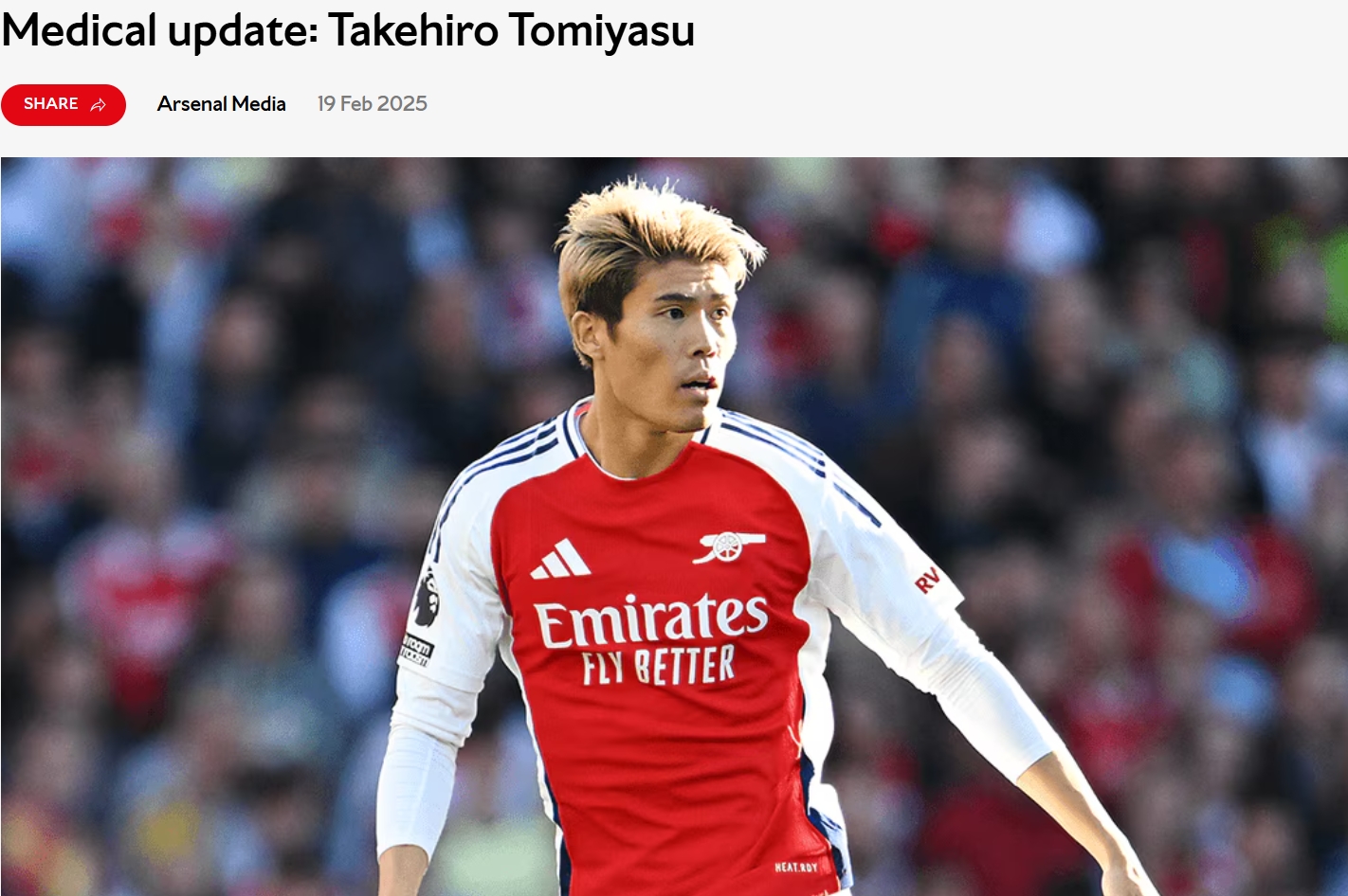 02月19日訊 阿森納官方宣布,富安健洋重新進(jìn)行膝蓋矯正手術(shù),康復期至今年年底。