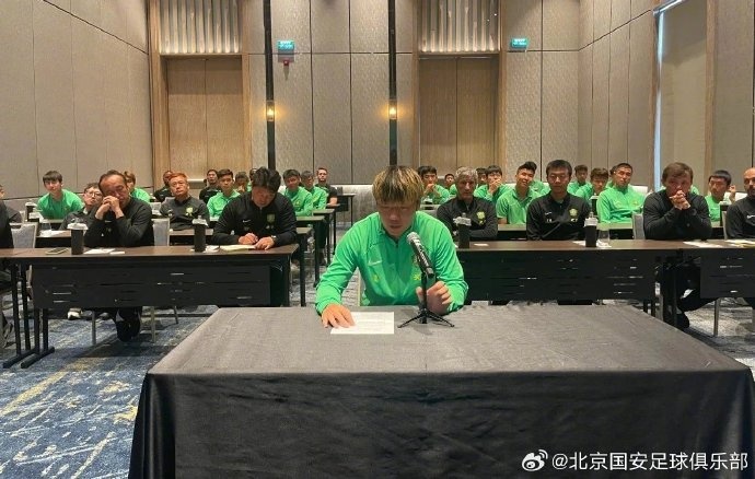 周金輝董事長(cháng)的發(fā)言鼓舞了全隊的士氣,隊長(cháng)張稀哲隨后代表全體隊員發(fā)言,他說(shuō):“新教練組的到來(lái)重塑了我們的足球思維,起初或許有磨合的陣痛,但現在,我們清晰感受到——這支團隊的心跳得更快、更齊了。我們也將在主教練的帶領(lǐng)下,同心協(xié)力,一切以團隊為先,集體為先。遵守隊規,遵守賽風(fēng)賽紀,堅守職業(yè)道德。身披綠色戰袍的這些年,工體山呼海嘯的吶喊早已刻進(jìn)骨髓。我們記得球迷在場(chǎng)內堅毅又期待的目光,記得數以萬(wàn)計的的綠色圍巾,更記得一次次場(chǎng)內tifo給予我們的力量。新賽季的倒計時(shí)已經(jīng)響起!我們會(huì )像捍衛家門(mén)一樣守護每一寸球場(chǎng)。沒(méi)有保留,沒(méi)有退路,唯有將每一分鐘燃燒到極致——為了北京,為球迷,更為了我們的信仰,“國安永遠爭第一”!”