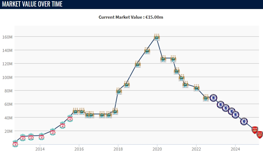03月18日訊 今日德轉更新英超球員身價(jià),阿森納前鋒斯特林身價(jià)再跌700萬(wàn),目前僅為1500萬(wàn)歐元,不足巔峰身價(jià)十分之一。