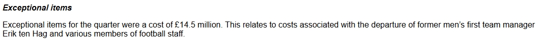 而在曼聯(lián)財報的的財務(wù)信息細則中,還可以看到球隊解雇滕哈赫所花費的費用為1450萬(wàn)鎊。