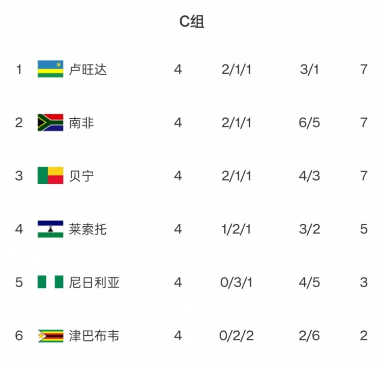 C組:盧旺達、南非、貝寧同積7分,競爭激烈!尼日利亞4輪僅3分,出線(xiàn)告急!