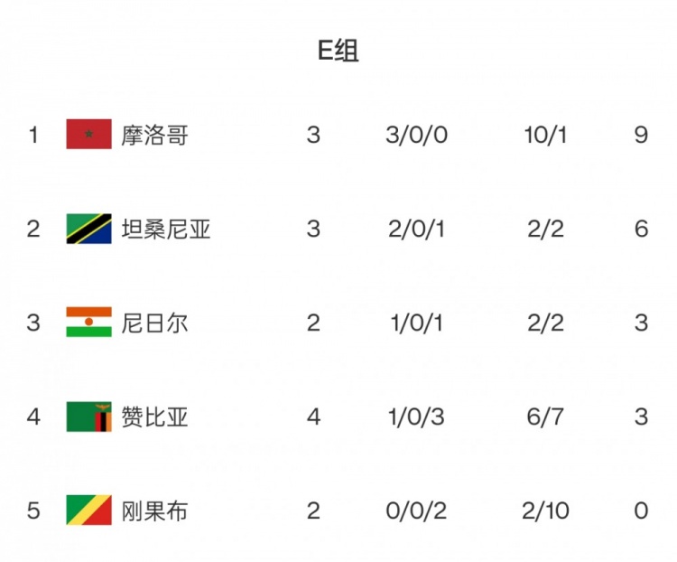 E組:摩洛哥無(wú)懸念領(lǐng)跑,因厄立特里亞退出僅剩5隊