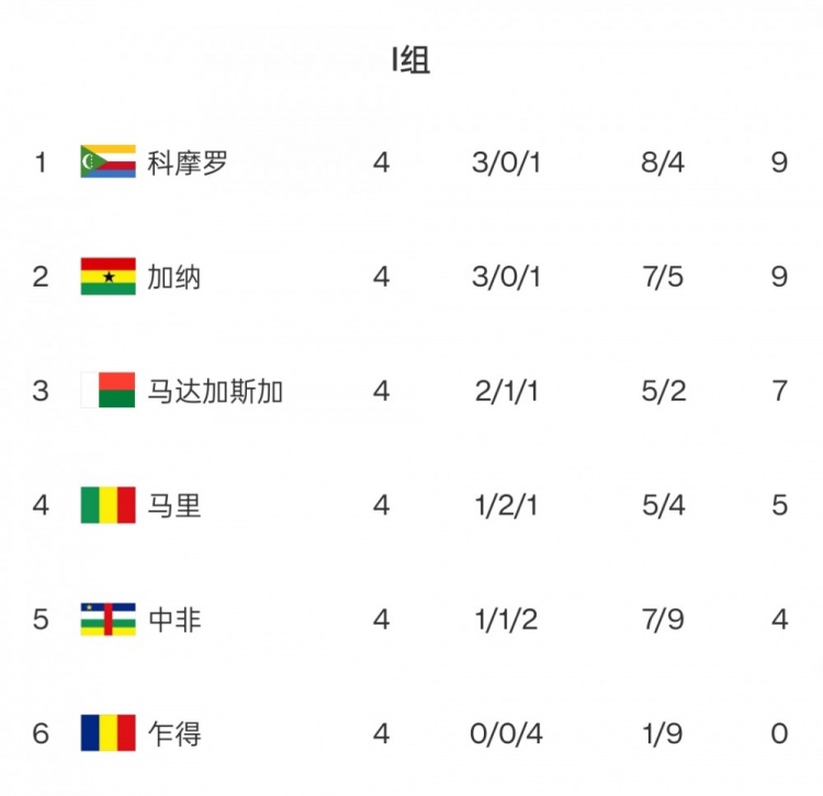 I組:“黑馬”科摩羅與加納同積9分,前者能否創(chuàng )造歷史首次突圍?