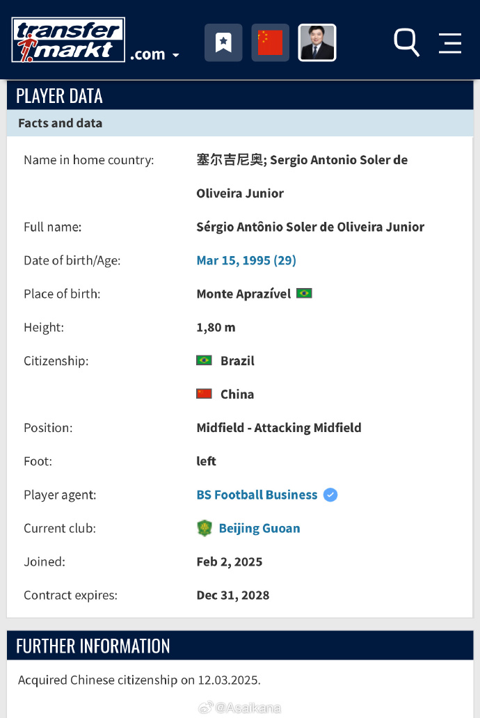 在此之前,塞爾吉尼奧就多次表達了自己想要被歸化的態(tài)度,雖然表態(tài)上不如奧斯卡那么“猛烈”,不過(guò)也足夠誠懇。一方面他跟中國足球、亞洲足球結緣許久,雖然不是正統的“華夏人”,不過(guò)對中國足夠熟悉了,因此想要入籍也是可接受的;另一方面對他來(lái)講加入中國男足爭取世界杯的參賽機會(huì ),也是職業(yè)生涯努力的重要方向,在此之前他可是沒(méi)有資格在巴西入圍各級梯隊的,國字號隊伍的成就,還要在“新的空間”才有機會(huì )去實(shí)現。