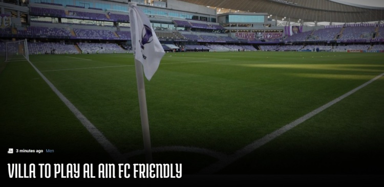 3月19日訊 阿斯頓維拉官方宣布,俱樂(lè )部將在北京時(shí)間3月21日凌晨2:00(阿聯(lián)酋時(shí)間3月2日晚22:00)和阿聯(lián)酋俱樂(lè )部阿爾艾因進(jìn)行一場(chǎng)友誼賽。