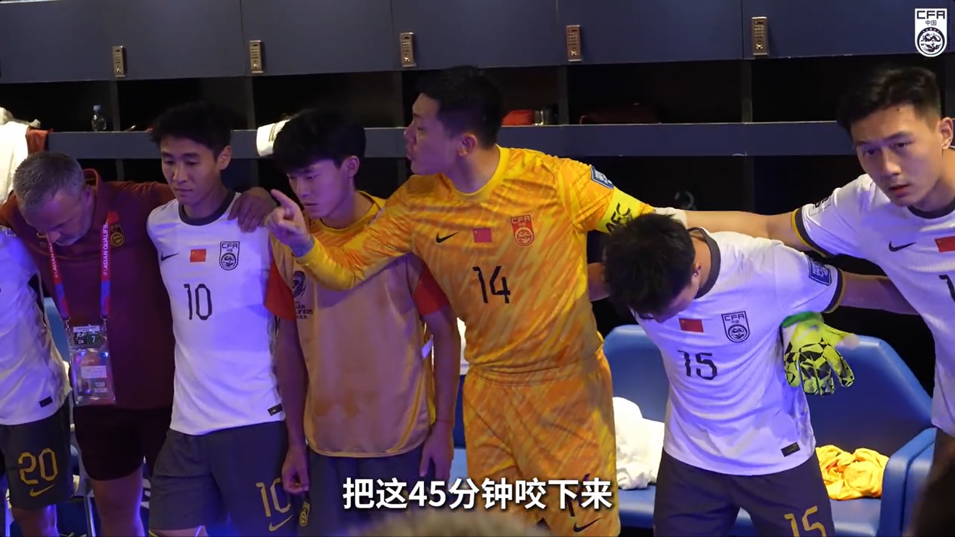 國足官方發(fā)布球隊0-1不敵沙特的微紀錄片,由于林良銘上半場(chǎng)最后階段吃到紅牌被罰下,國足下半場(chǎng)只能以十人應戰,隊長(cháng)王大雷中場(chǎng)休息時(shí)也在更衣室鼓勵隊友。