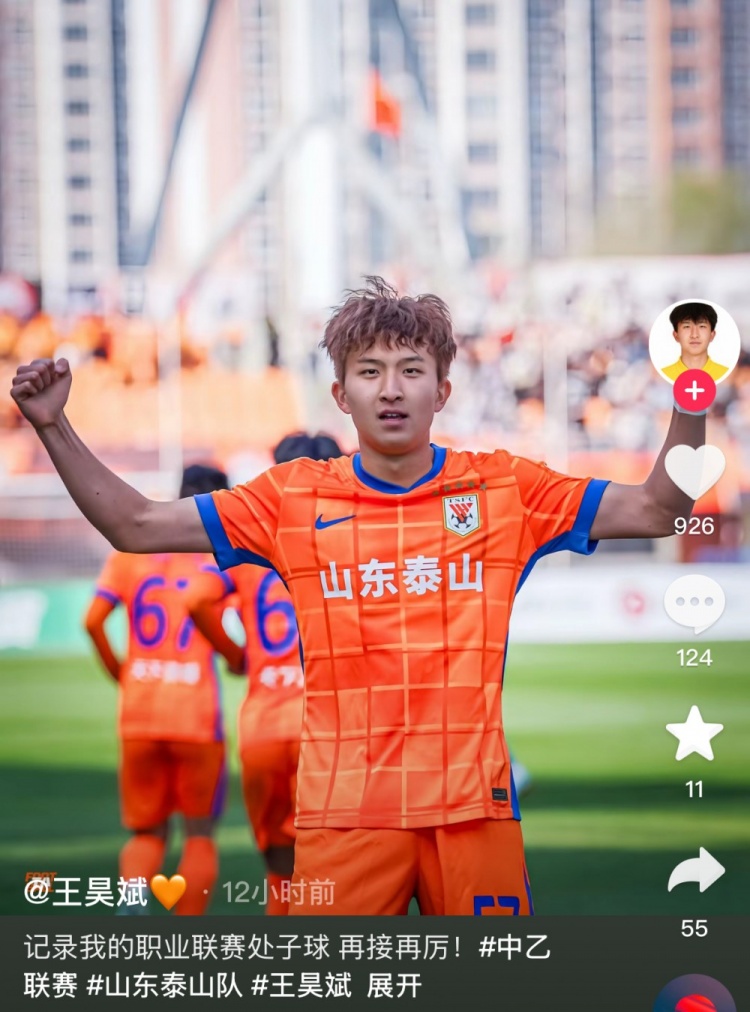 包辦泰山B隊中乙首輪兩進(jìn)球,王昊斌社媒:聯(lián)賽處子球,再接再厲