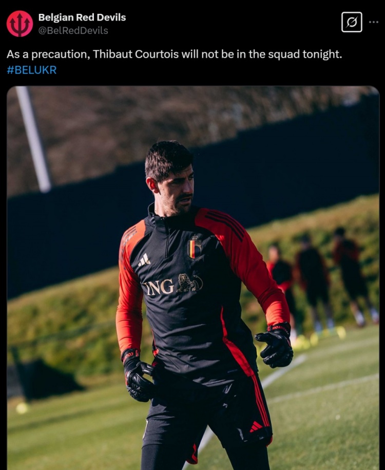 膝蓋出現傷情,比利時(shí)官方:作為預防措施,庫爾圖瓦不出戰烏克蘭