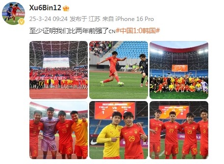 成功復仇韓國,U22國足球員徐彬曬照:至少證明我們比兩年前強了