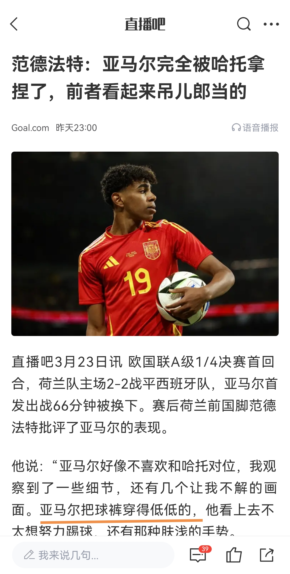 尼科的內褲都露了!亞馬爾故意拉低球褲“吊兒郎當”回擊范德法特
