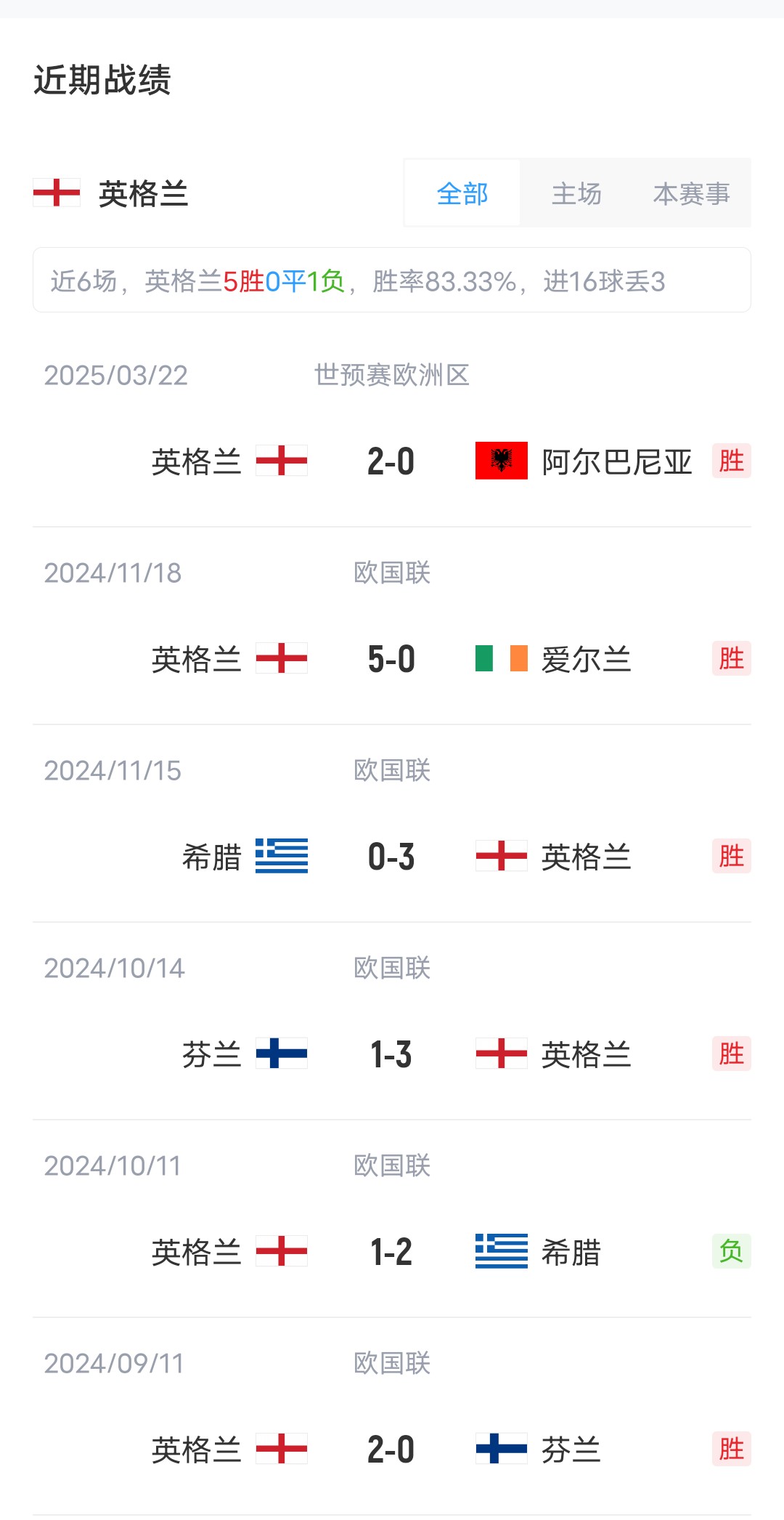 上輪比賽英格蘭客場(chǎng)2-0擊敗阿爾巴尼亞,拉脫維亞客場(chǎng)1-0小勝安道爾。目前兩隊實(shí)力差距明顯,在最新的FIFA排名中,英格蘭排在第4,而拉脫維亞排在140。