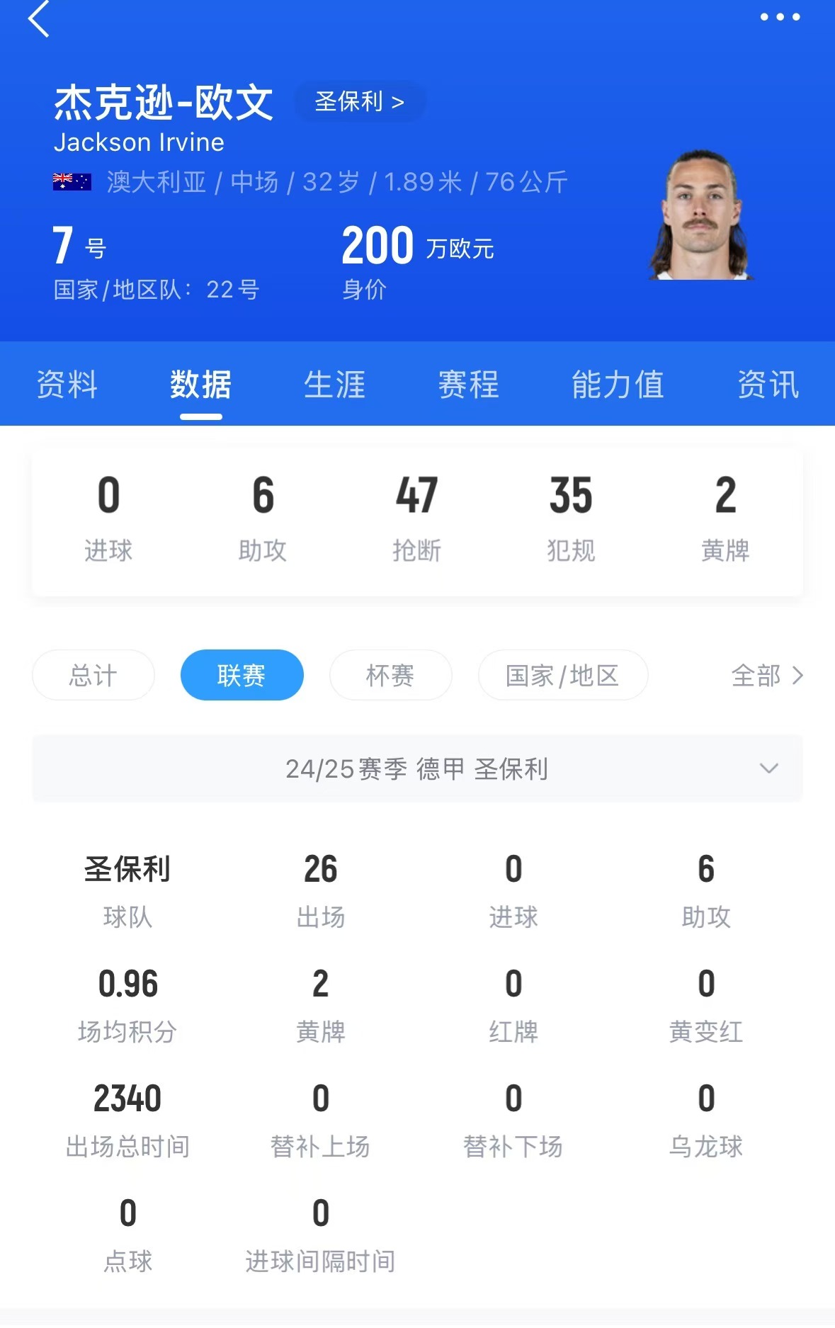 單挑國足后防破門(mén)!杰克遜-歐文德甲主力賽季26場(chǎng)6助 現身價(jià)200萬(wàn)