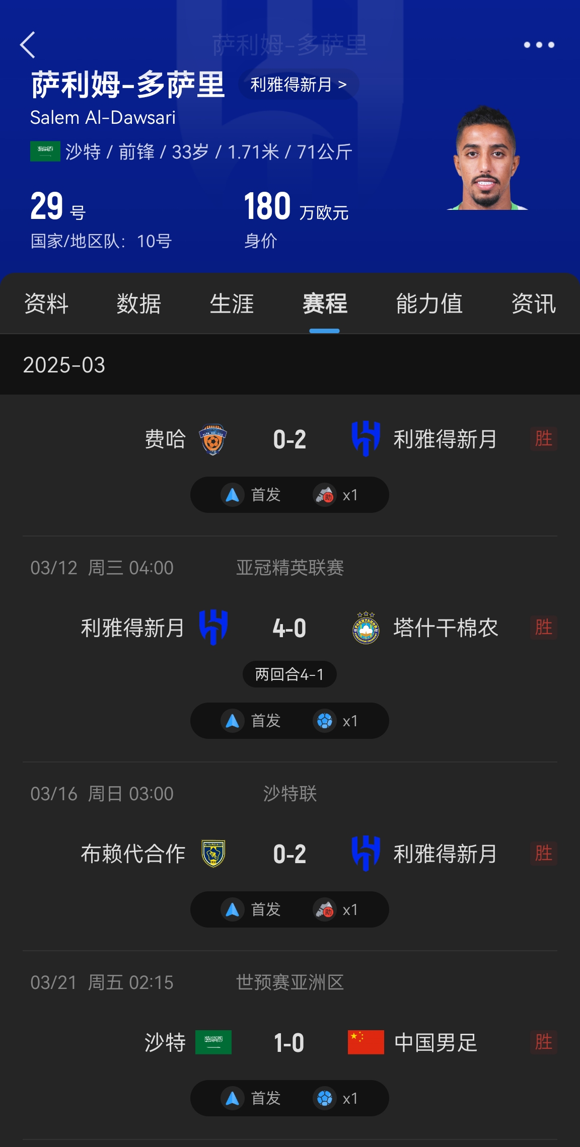 沙特隊長(cháng)多薩里3月16日在沙特聯(lián)打滿(mǎn)全場(chǎng),3月21日對國足打入制勝球