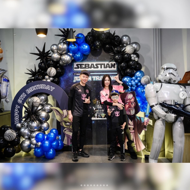 陶喆妻子江佩蓉在社交媒體上曬出全家的合照,慶祝兒子6歲生日,一家人都身穿邁阿密?chē)H球衣。