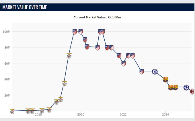 巔峰1億歐!25歲菲利克斯在米蘭10場(chǎng)1球,最新身價(jià)跌至2500萬(wàn)歐