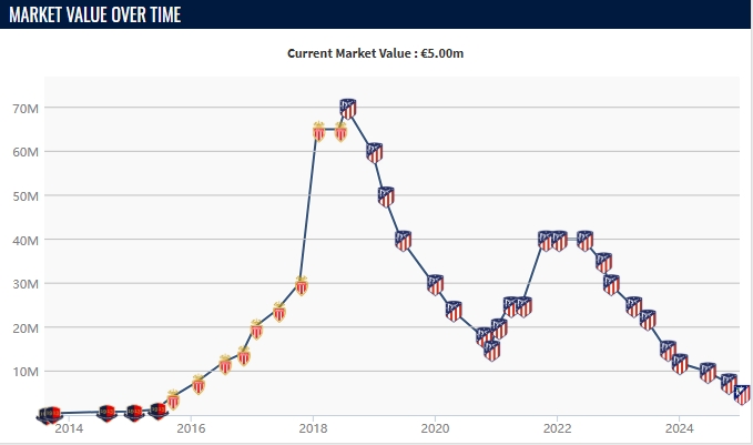 血虧?29歲勒馬爾今夏恐遭清洗,馬競18年花7200萬(wàn)&現身價(jià)僅500萬(wàn)