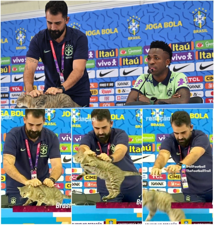 這是2022年12月8日,維尼修斯參加新聞發(fā)布會(huì ),一只貓貓被新聞官無(wú)情扔走~自此巴西一蹶不振……