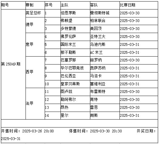 傳足勝負彩第25049期競猜賽事為英足總杯、德甲、意甲、西甲和法甲賽事,其中曼城將在英足總杯1/4決賽中對陣伯恩茅斯,意甲領(lǐng)頭羊國米主場(chǎng)面對烏迪內斯,AC米蘭和那不勒斯展開(kāi)強強對話(huà),西甲巴薩坐鎮主場(chǎng)迎戰赫羅納。