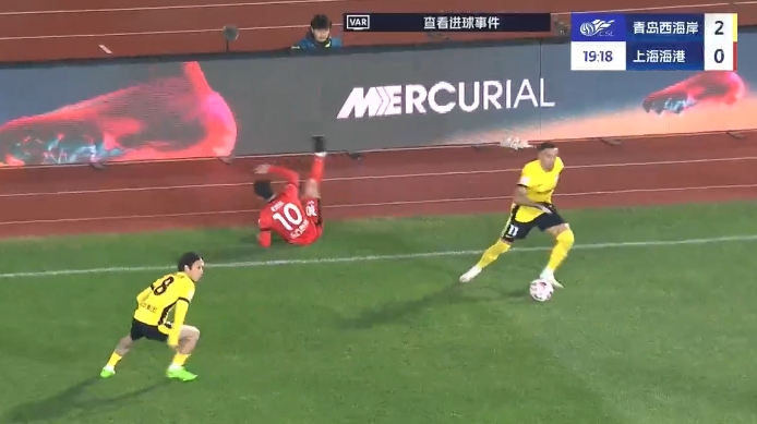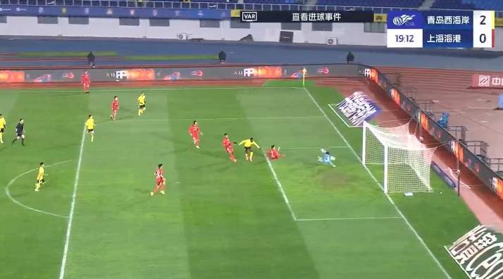 海港后防被斷再次丟球!第19分鐘,西海岸前場(chǎng)繼續高位逼搶?zhuān)骶S森左路斷球后傳中,阿齊茲禁區內轉身掃射破門(mén),青島西海岸2-0上海海港!↓