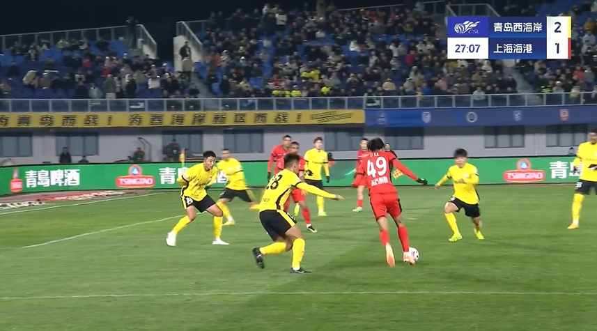 上半場(chǎng)比賽結束,上海海港客場(chǎng)暫時(shí)1-3落后青島西海岸。